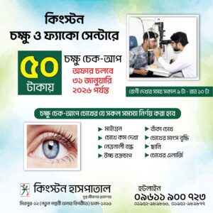 কিংস্টন চক্ষু ও ফ্যাঁকো সেন্টারের বিশেষ অফার মাত্র ৫০ টাকায় চক্ষু চেক-আপ – চলবে ৩১ জানুয়ারি ২০২৬ পর্যন্ত Read More » November 14, 2025